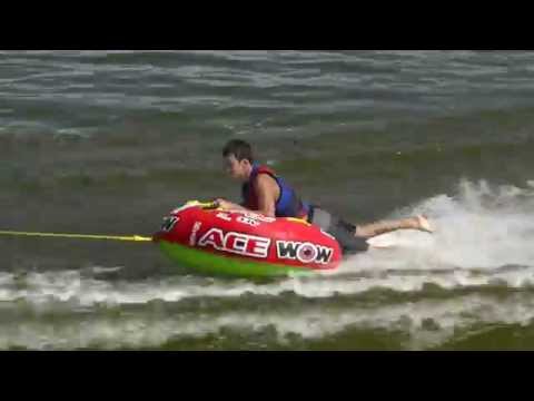 The one person, partial covered boat tube was invented in 1984 by the Head Designer of WOW. Millions have been sold over the years so WOW has decided to change it up a bit with an arrow shaped design rather than a circular one. This new design allows for more stability and control for the rider. A new twist on an old concept.