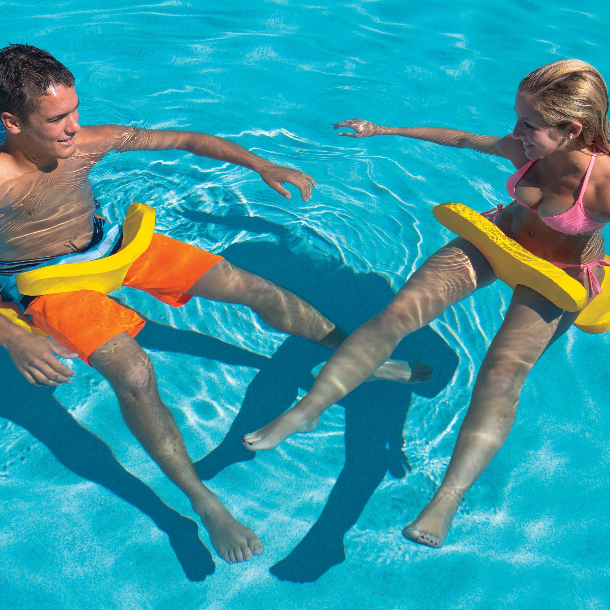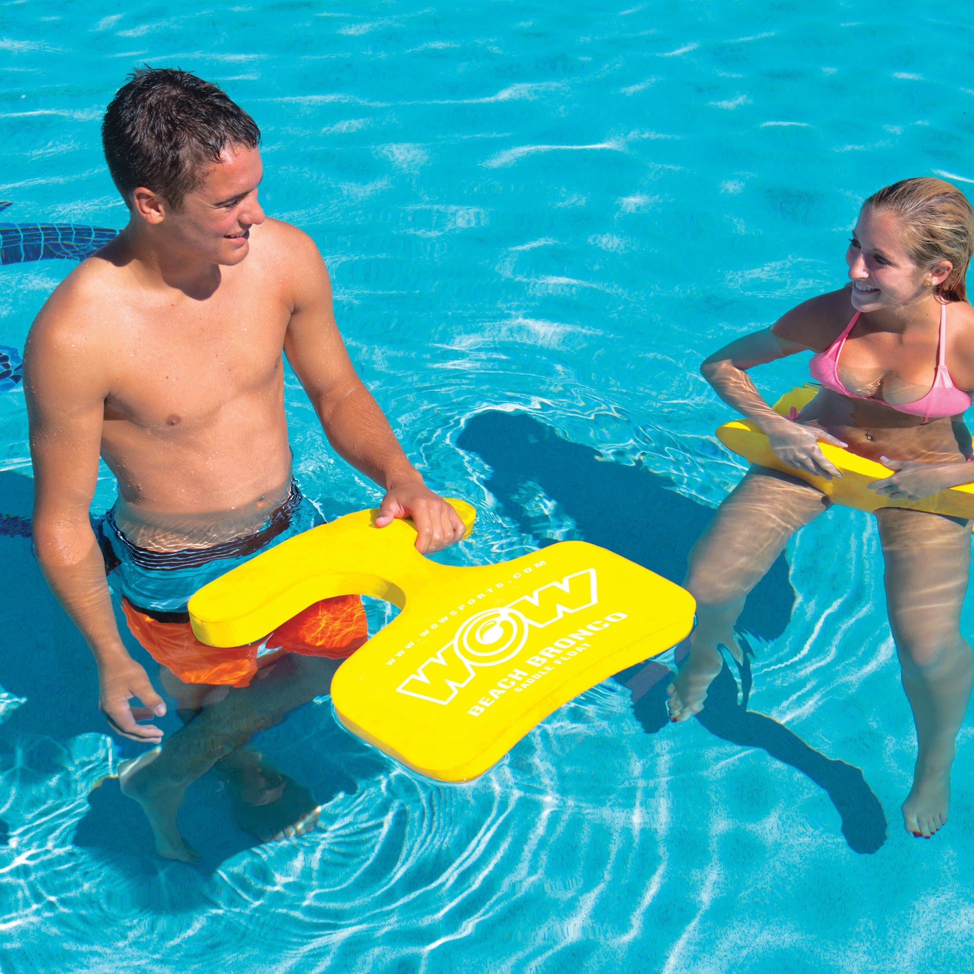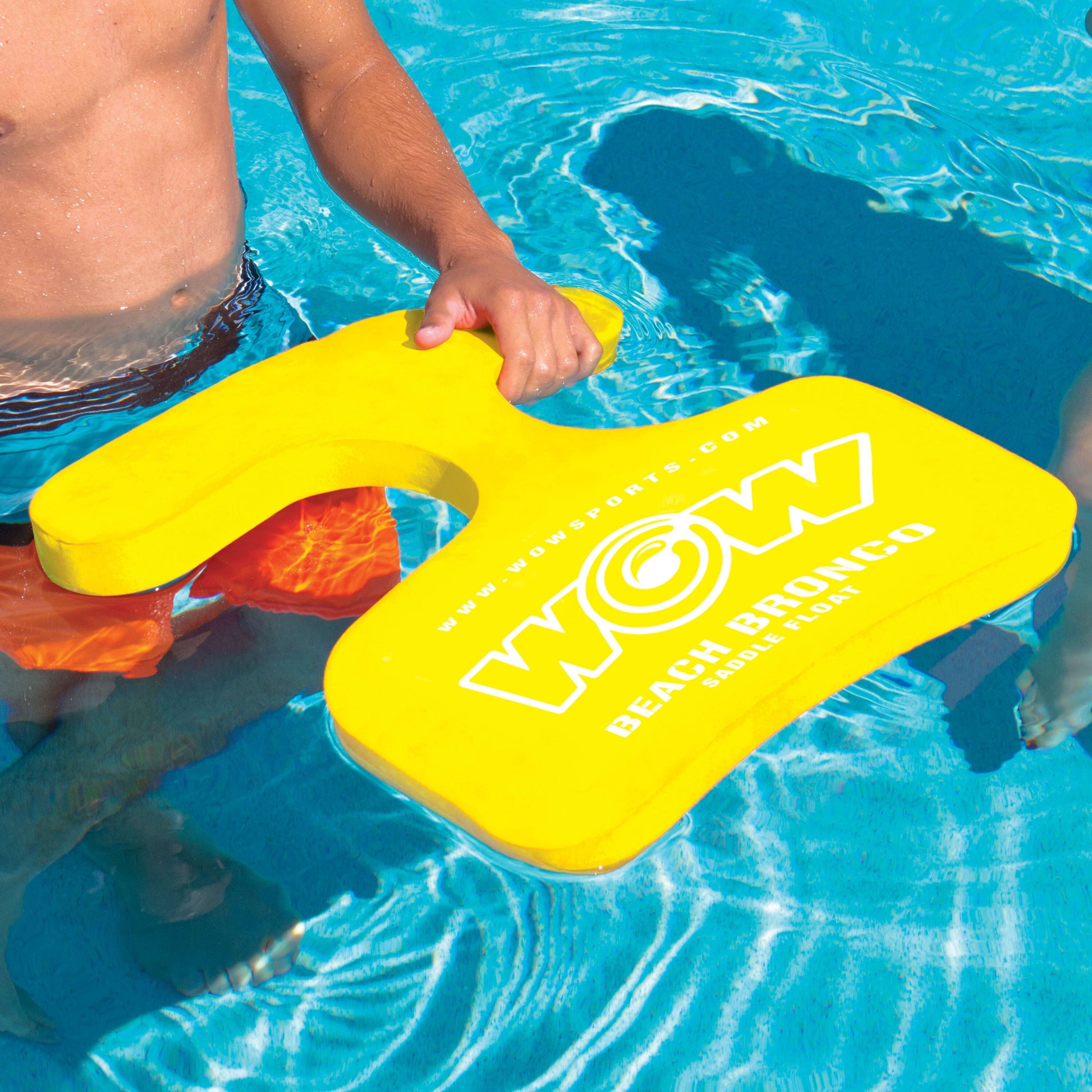 Sit on the WOW Sports Beach Bronco in blue for a relaxing experience in a pool, lake, or river. Make from extra thick foam, this soft pool seat keeps you afloat while offering comfort and security. You'll love that your arms and legs are free so you feel like you're swimming. Yet this pool seat does the work of holding you up, so you can truly enjoy the experience of being in the water. Designed for one person up to 220 pounds.