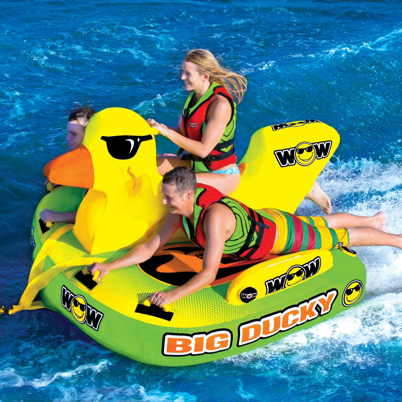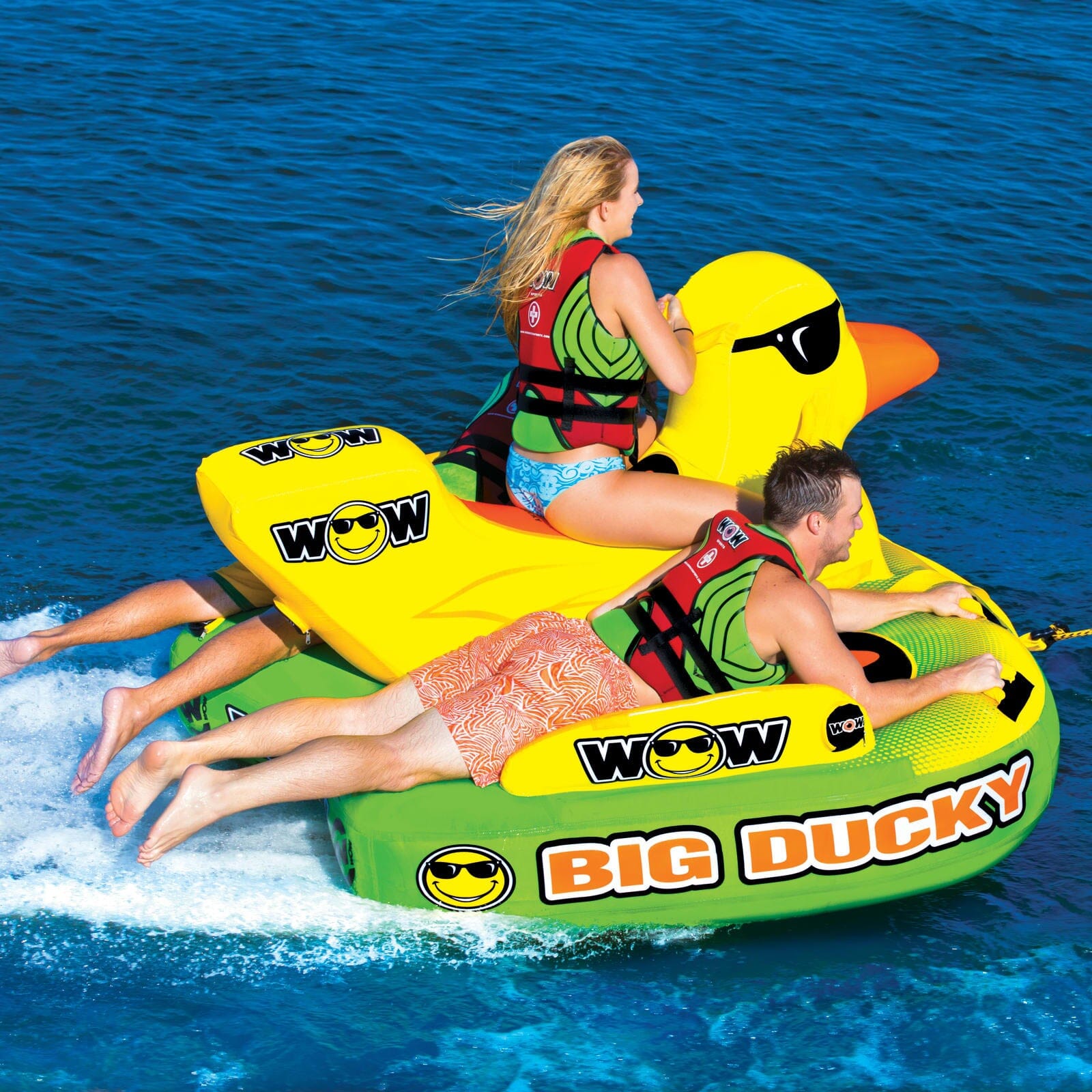 The kids are going to love this one! This custom, deluxe deck tube features a WOW Big Ducky design theme, secure saddle seat as well as a large, wing-shaped deck area for 1, 2, or 3 riders to sit, stand, kneel, or lay down. Each side of the winged-shaped deck area has custom winged-shaped EVA foam body pads and a side bumper system built on the edges to keep the riders from falling off when the ride gets extreme. Bring back memories from your childhood or create some new ones for your kids with Big Ducky from WOW.