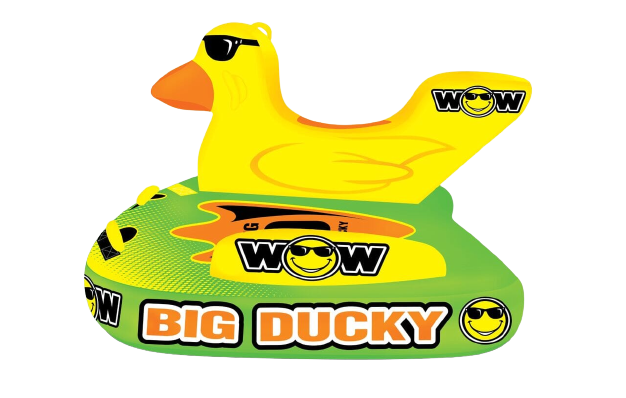 The kids are going to love this one! This custom, deluxe deck tube features a WOW Big Ducky design theme, secure saddle seat as well as a large, wing-shaped deck area for 1, 2, or 3 riders to sit, stand, kneel, or lay down. Each side of the winged-shaped deck area has custom winged-shaped EVA foam body pads and a side bumper system built on the edges to keep the riders from falling off when the ride gets extreme. Bring back memories from your childhood or create some new ones for your kids with Big Ducky from WOW.