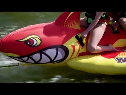 The most Fintastic Towable by WOW! The hungry Big Shark Towable is a 2 rider in-line float, a classic style that has been a rider’s favorite for decades. The Big Shark gives 1 to 2 riders a simple way to sit and ride while utilizing custom shaped, large pontoon fins for fun, stable, and secure riding. HI-VI colors and mean graphics will make sure that you are seen on the water, no sneak attack here! Large EVA foam handles allow riders to hang on for when the Big Shark is in pursuit! Make Shark Week last all summer long with WOW’s Big Shark.