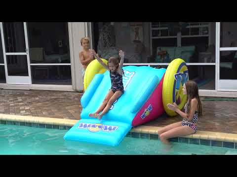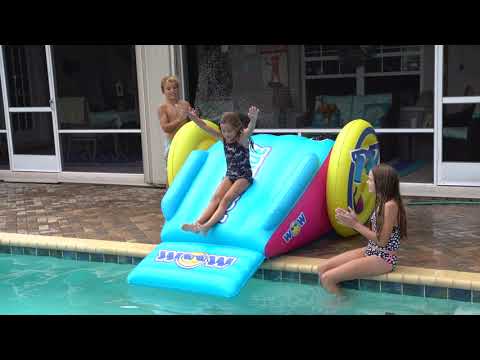 Add FUN to any pool with WOW's FUN Pool Slide. This easy to set-up inflatable has WOW water ballast pontoons for secure stable sliding. Built in soaker sprinkler creates a wet fast sliding surface that connects easily to any standard garden hose. EZ boarding step design with moulded handles. At the bottom of the slide, there is a WOW slide bumper for easy entry into the water.