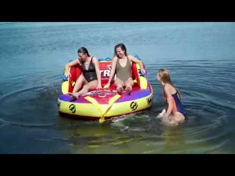 Double the trouble! Is it a couch style towable? Or a Chariot style? On the Martix, it’s both! Two foam seats in the front and two more in the back makes room for quadruple the fun! Ride sitting or kneeling, on the front or the back – switch it up to ride the Matrix to the fullest! Comes with a flat base for a smooth ride over the water and minimal drag on the boat. The secure deck seating with tall sidewalls allow up to 4 riders to feel secure.