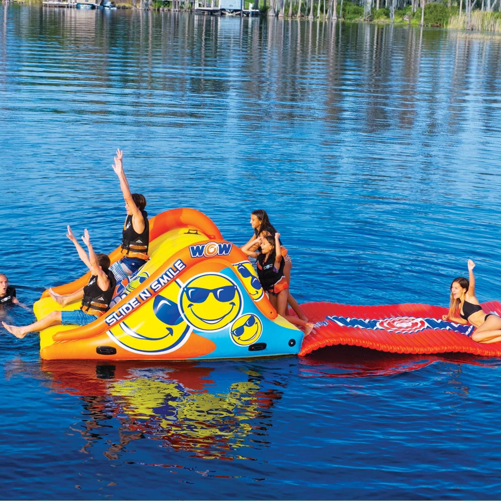 Why have one, when you can have two? Combining 2 of our favorite products together to double the fun! Our water walkway attaches by zipper to the 2 lane slide that can float anywhere. Both products are inflatable and can be tied off to a dock, boat or pool together or separate.