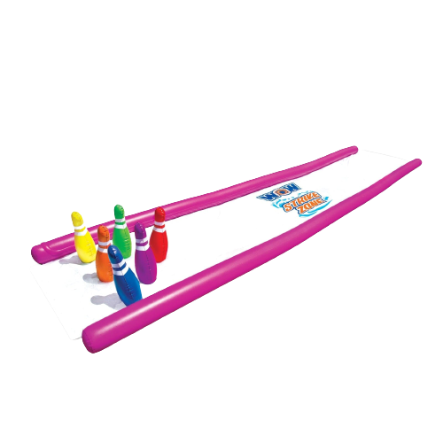 This backyard toy is right up your alley! The WOW Strike Zone is a giant 25′ x 6′ water slide for the lawn that will keep the kids entertained all day long. The slide is made from extra thick, heavy-duty, super-slick embossed PVC. In fact, it is more than twice as thick as most of the slides you will find in the market AND its backed by WOW’s 1-year warranty. Our zig-zag patterned, 25′ embedded sprinkler system, connects to the standard backyard hose, runs the length of the slide and has 100% water coverage so no dry spots. We also installed sidewall pontoons to keep the water (and the riders!) on the slide and out of the gutter! That’s not even the best part – this slide comes with inflatable pins! You read that right, your already cool water slide just turned into a giant bowling alley in your backyard! Each slide comes with 2 inflatable sleds to cushion the fall and make the slide even more slippery. Riders slide down and burst through the pins like a champion!