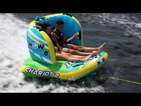 Chariot comes with all the safety, durability, and speed features you'd expect in a two person towable. Sit, stand, or kneel close to a friend as the two of you zip over blue waves and laugh with delight. In addition to having three ways to ride, there are dual tow points that allow the tube to face either direction. The backrest on Chariot, plus the foam webbing handles, provides support so you can stay on the float when you're speeding ahead and catching serious wind. You'll also love the vibrant green and blue colors, which brighten your day and add an inviting summer look. This towable lake float is made from heavy duty materials, so it'll deliver fun and excitement to your family for years to come.