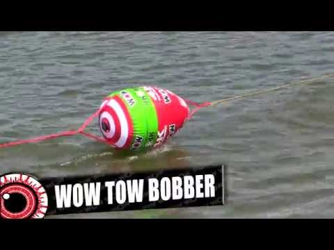 The Tow Bobber from WOW is a modified tow rope that will enhance your towing experience immensely. One problem that all tube riders face is the tow rope getting caught in the water on the whips. The Tow Bobber solves this problem. The Tow Bobber is a 60 ft. tow rope with a bullet-shaped, heavy duty nylon covered inflatable that keeps the rope raised above the water. This allows the tube to pull cleanly back and forth over the wake. The tow rope is in 3 sections, each of a different length, which can be adjusted based on the wake of your boat. The Tow Bobber will reduce drag, protect against snap backs, and improve your overall ride. Try it and see the difference. You won?t ever want to ride without one again.