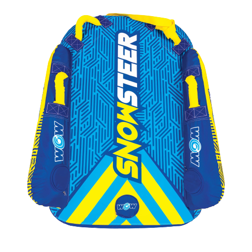 Discover an entirely new snow tubing experience with Snowsteer, a winged 1 person snow tube that helps you slide. Made to optimize downhill sledding, Snowsteer is an oblong shape with four double webbing foam handles that let you lie down on your belly and catch some serious wind. The top deck riser wings keep you on board as the ski polish heavy-duty tarpaulin bottom adds slickness and speed. Best of all, the heavy duty molded bottom has snow runners that help you navigate with ease. You'll also love the heavy-gauge cold crack additive, which keeps this winter snow tube in top shape for many winters to come. Add in the fast inflation valve for quick inflation and deflation, the padded zippered valve covers, and the convenient tow leash, and you'll see why so many winter lovers call this best inflatable snow tube you can buy.