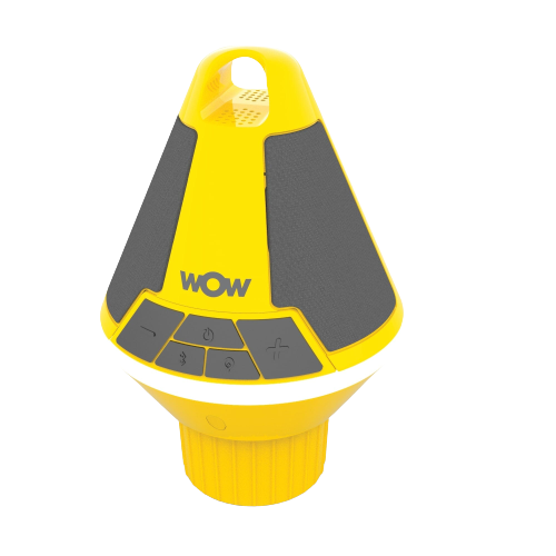 Take your music on every adventure! The WOW Sports Buoy Speaker in yellow and blue feature a unique design that emits high-quality sound in every direction. It's also waterproof, shock-proof, and dust-proof—and boasts 20 hours of battery life. You'll love that this portable Bluetooth speaker is equipped with a 360 degree LED lamp, making it perfect for camping, lakeside nights, and anywhere you might need an extra flashlight. The tapered bottom fits into WOW cup holders, making this waterproof speaker a great companion to river trips and pool hangs, too. Or, use the clip to hook onto your backpack as you trek.