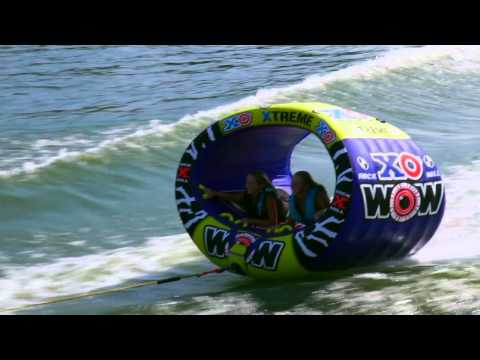 WOW's most exciting towable yet! Built for 1-3 riders, the XO Extreme is a one of a kind, oval shaped design towable with a rocker-ed bottom to provide the most excitement ever on the water! Because of its patented oval shape design the amount of surface area touching the water is minimal which allows for a fast ride and less drag on your boat (i.e. better gas mileage) as it slips and slides across the wake with ease. This new concept from WOW has a high profile and is highly visible in the water, so expect to get a lot of attention while you are zooming back and forth behind the boat. It also makes for a great lounger, so after your thrilling ride sit back, relax, and float free in your favorite body of water on the XO Extreme.